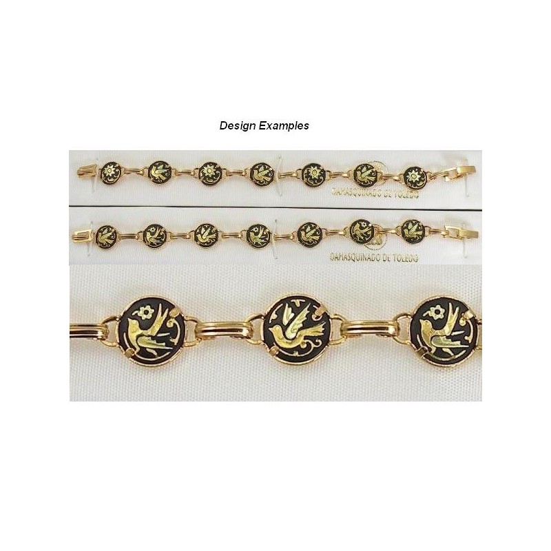 Damascene Gold Bird Bracelet 10mm Round. Damascene Jewelry by Midas of Toledo Spain. Golden Bracelet. Damascene Womens Jewelry.