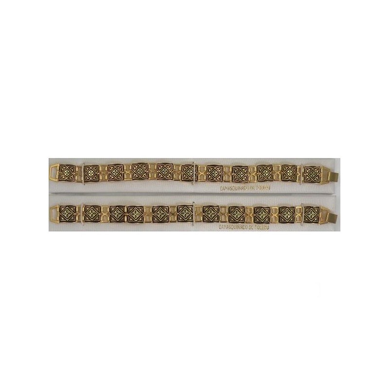 Damascene Gold Geometric Bracelet Square Style 204. Damascene Jewelry by Midas of Toledo Spain. Golden Bracelet. Damascene Womens Jewelry.