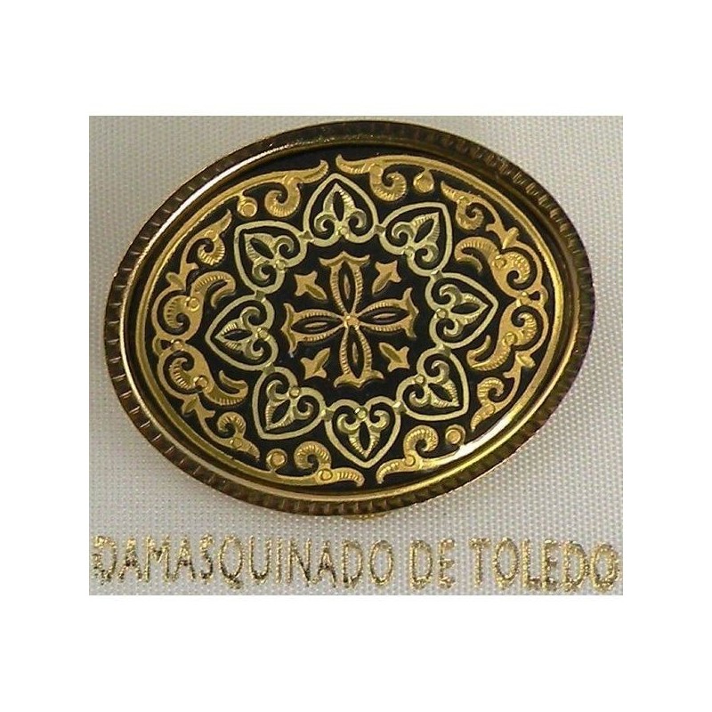 Damascene Gold Geometric Oval Brooch style 8701. Damascene Jewelry by Midas of Toledo Spain. Brooch for women.