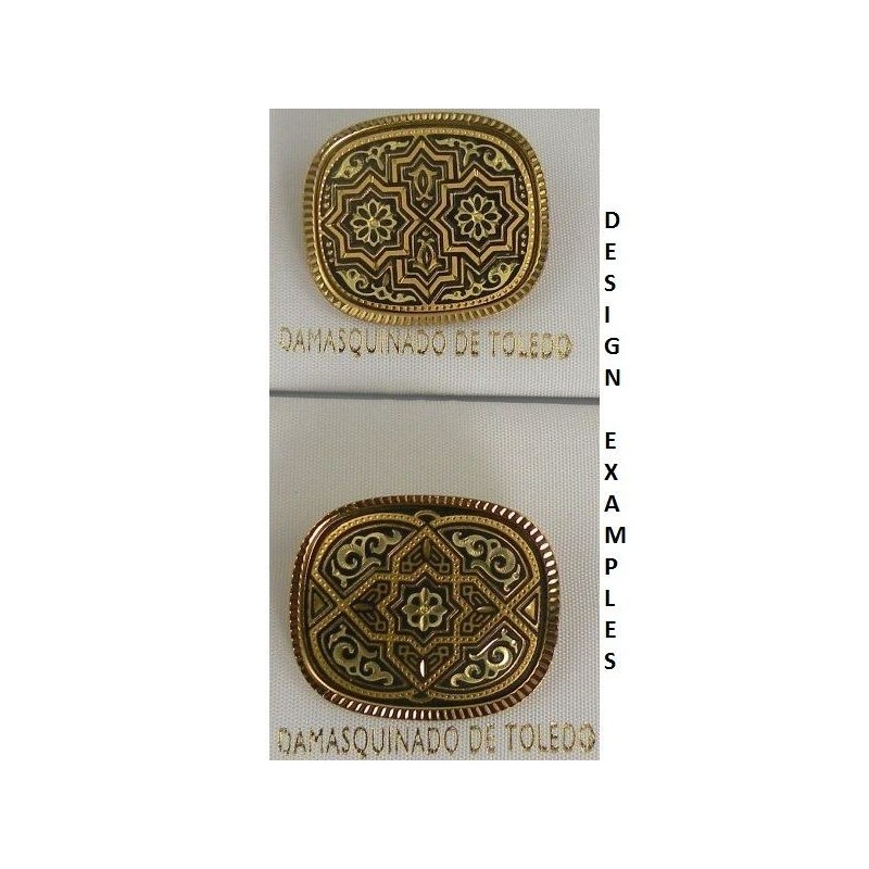 Damascene Gold Geometric Rectangle Brooch style 8702. Damascene Jewelry by Midas of Toledo Spain. Brooch for women.