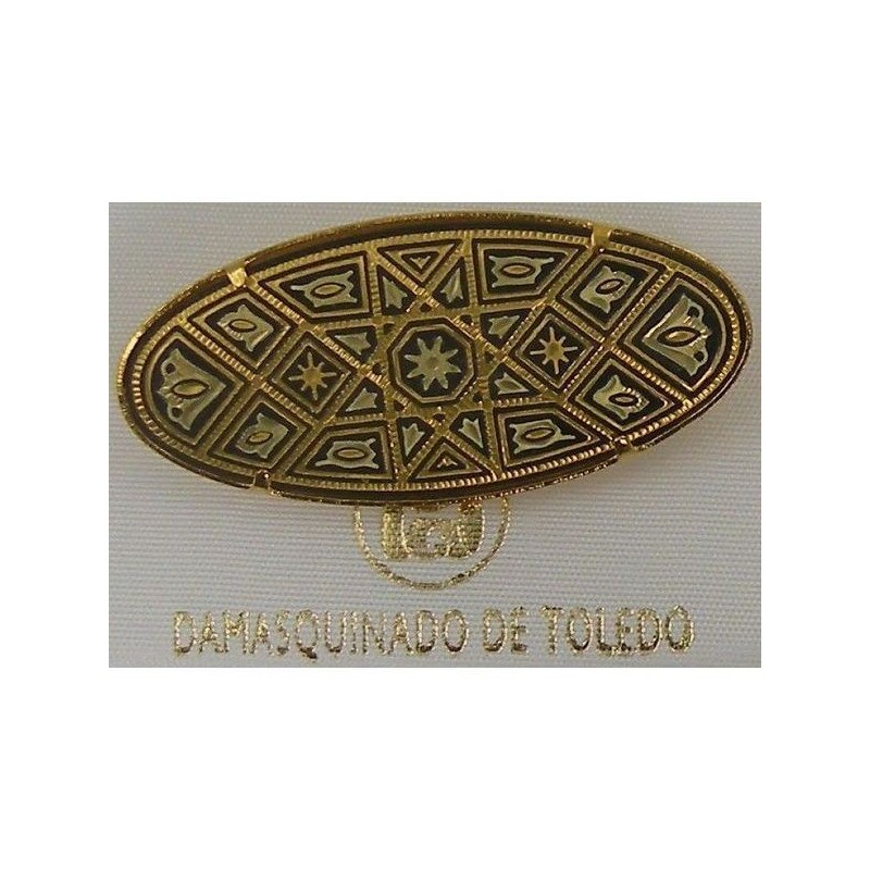 Damascene Gold Geometric Oval Brooch style 2231. Damascene Jewelry by Midas of Toledo Spain. Brooch for women.