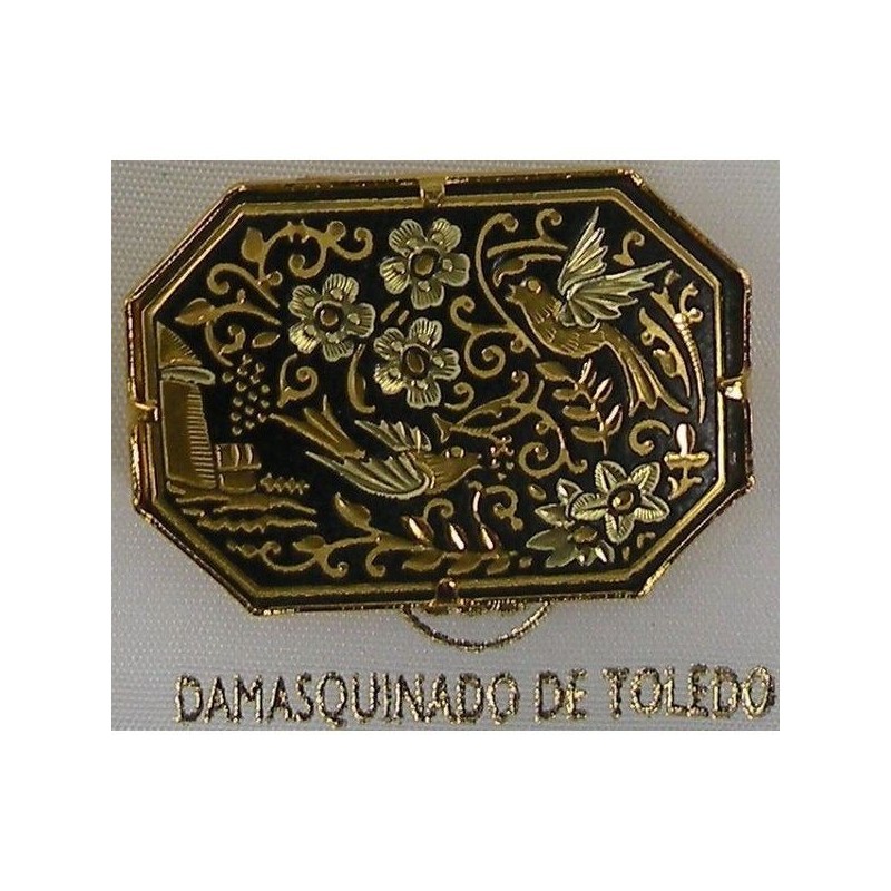 Damascene Gold Bird Octagon Brooch. Damascene Jewelry by Midas of Toledo Spain. Brooch for women.