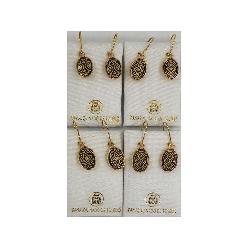 Damascene Gold Geometric Oval Earrings style 2123. Damascene Jewelry by Midas of Toledo Spain. Golden Earrings. Damascene Womens Jewelry.