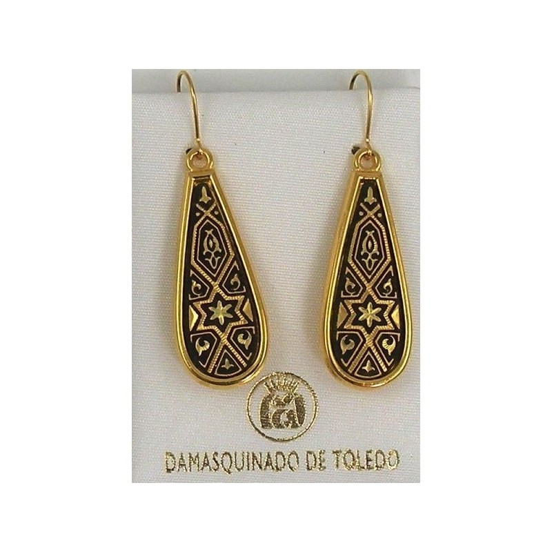 Damascene Gold Star of David Teardrop Earrings. Damascene Jewelry by Midas of Toledo Spain. Golden Earrings. Damascene religious Jewelry.