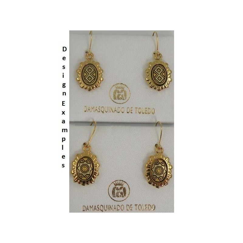 Damascene Gold Geometric Oval Drop Earrings style 8105. Damascene Jewelry by Midas of Toledo Spain. Unique damascene design. Golden Earrings.