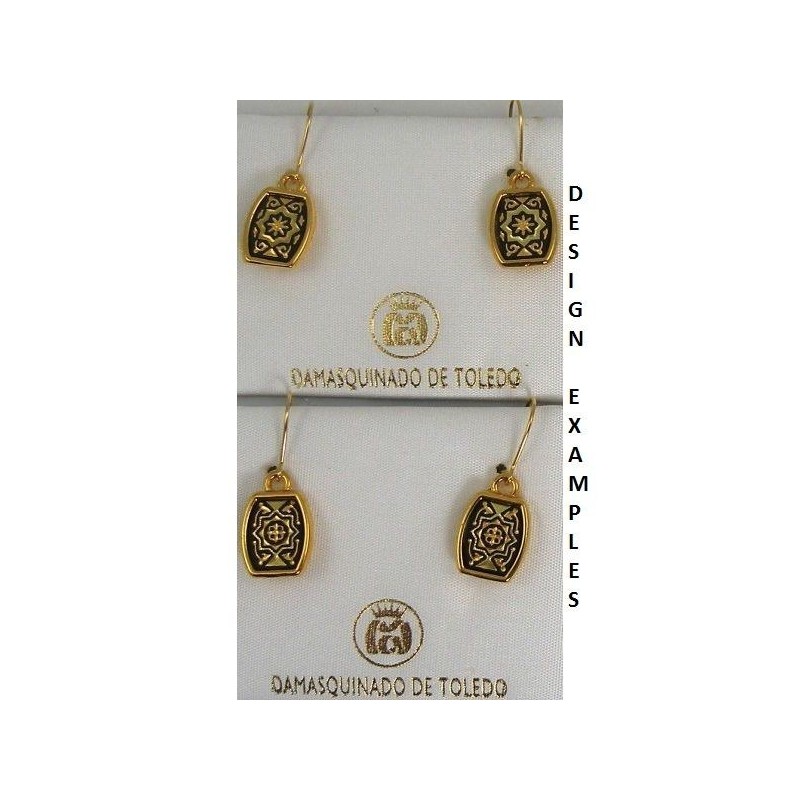 Damascene Gold Geometric Rectangle Drop Earrings. Damascene Jewelry by Midas of Toledo Spain. Golden Earrings.