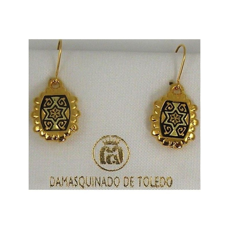 Damascene Gold Geometric Rectangle Drop Earrings style 8107. Damascene Jewelry by Midas of Toledo Spain. Golden Earrings.