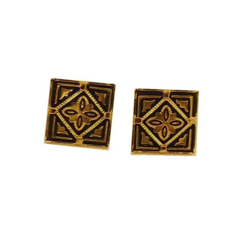 Beautiful pierce stud earrings with handmade gold damascene design work featuring Geometric design. These earrings measure 12 mm and are square in shape.