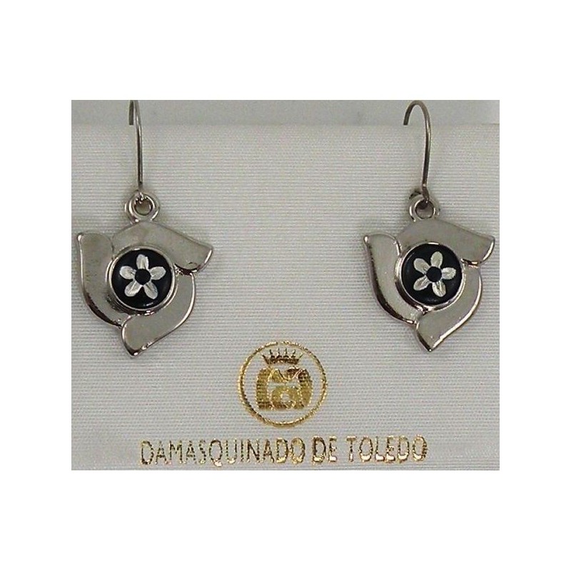 Damascene Silver Flower Flower Drop Earrings style 9111. Damascene Jewelry by Midas of Toledo Spain. Silver Earrings.