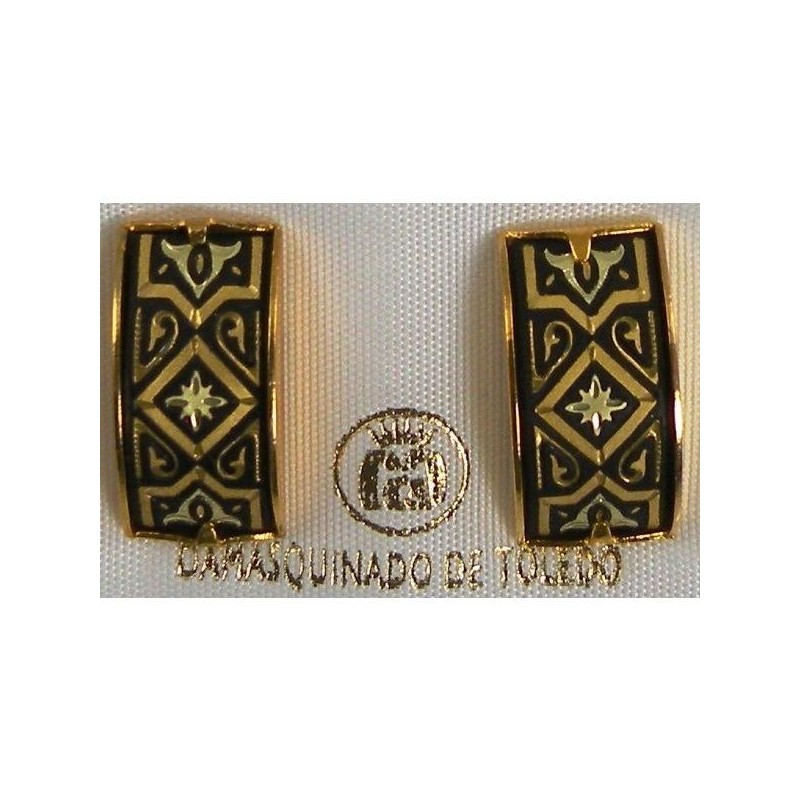 Damascene Gold Geometric Rectangle Stud Earrings by Midas of Toledo Spain style 2122