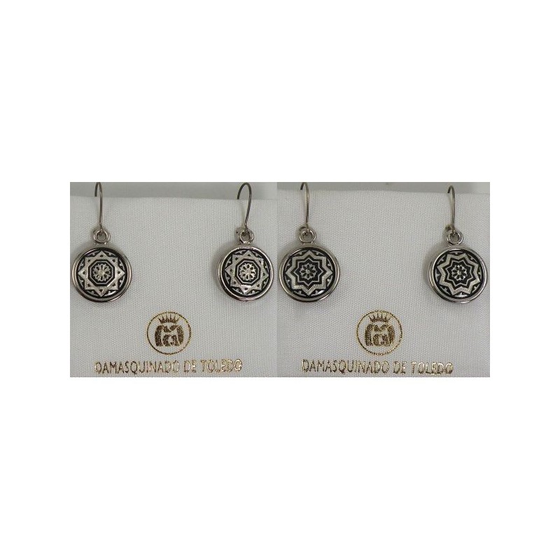 Damascene Silver Star Round Drop Earrings by Midas of Toledo Spain style 9102