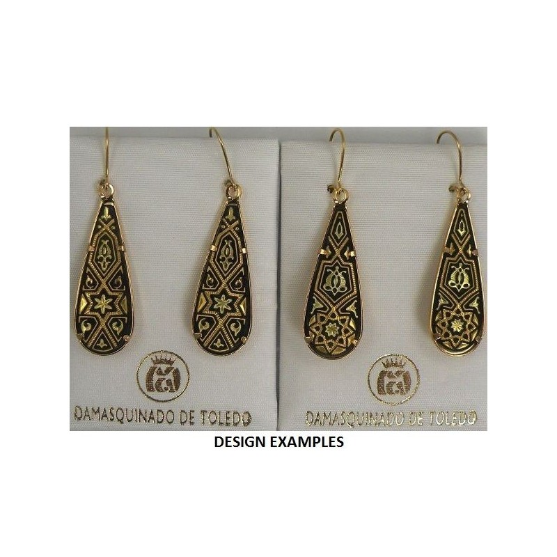 Damascene Gold Star Teardrop Drop Earrings. Damascene Jewelry by Midas of Toledo Spain. Golden Earrings. Damascene Womens Jewelry.