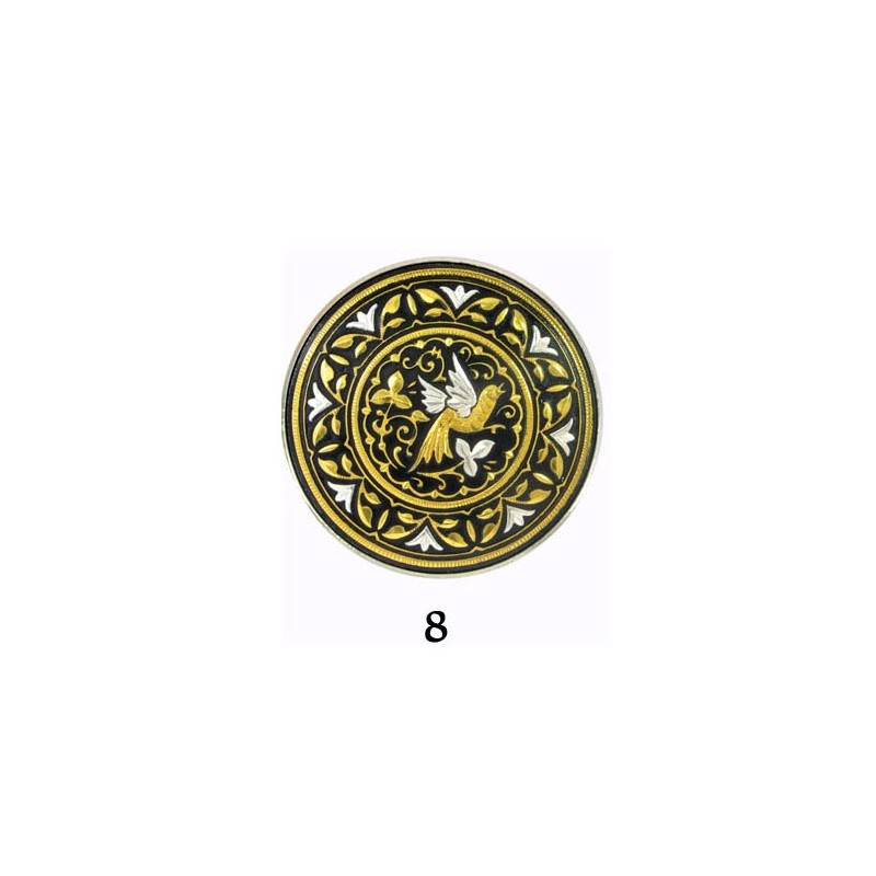 Damascene Widowbird Medallion Collectible Dish. Collectible Flatware by Midas of Toledo Spain. Damascene Flatware. Home and kitchen decor. 24K gold damascene artwork.
