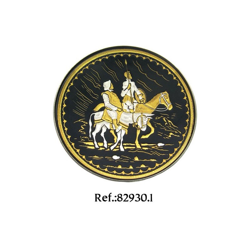 Damascene Quixote and Panza Collectible Dish. Collectible Flatware by Midas of Toledo Spain. Damascene Flatware.