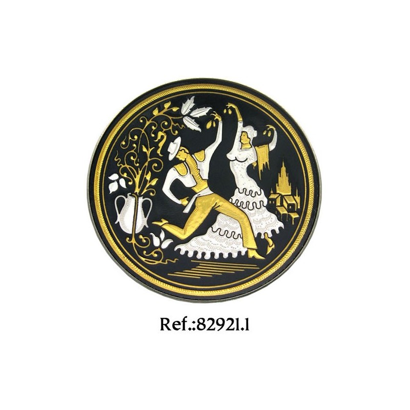 Damascene Flamenco Collectible Dish. Collectible Flatware by Midas of Toledo Spain. Damascene Flatware.