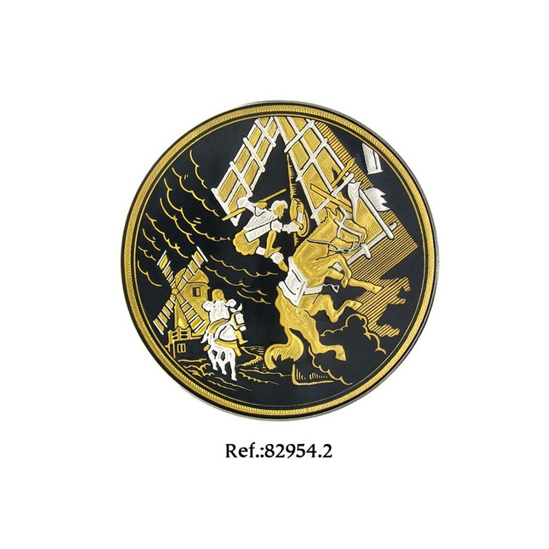 Damascene Tilting at Windmills Collectible Dish. Collectible Flatware by Midas of Toledo Spain. Damascene Flatware.