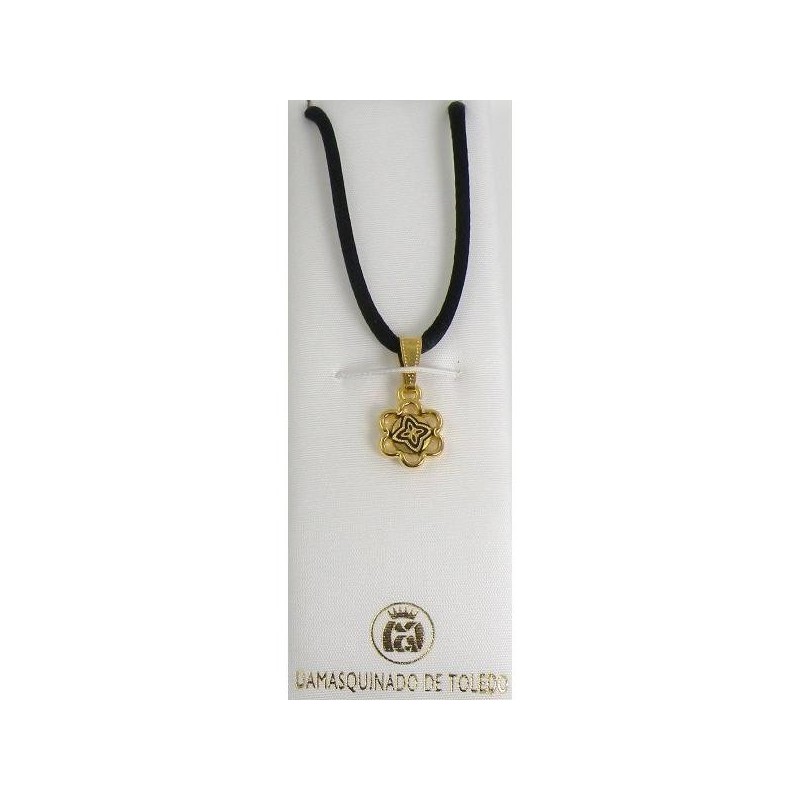 Damascene Gold Geometric Flower Pendant on Cord Necklace by Midas of Toledo Spain style 8210