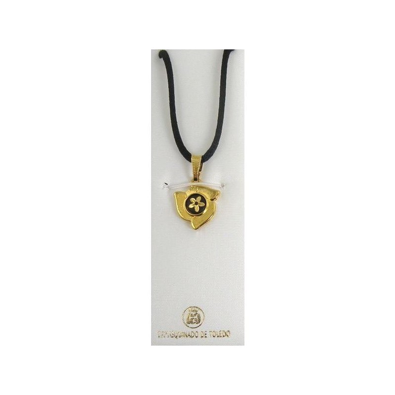 Damascene Gold Floral Flower Pendant style 8211. Damascene Jewelry by Midas of Toledo Spain. Golden Necklace. Damascene Womens Jewelry.
