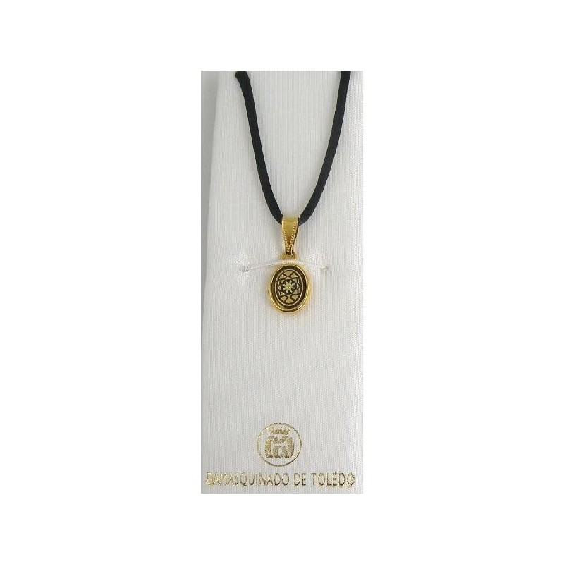 Damascene Gold Geometric Oval Pendant style 8204. Damascene Jewelry by Midas of Toledo Spain. Golden Necklace. Damascene Womens Jewelry.