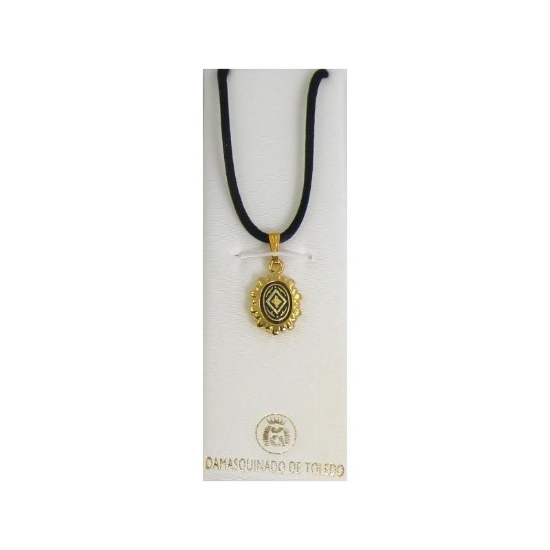 Damascene Gold Geometric Oval Pendant. Damascene Jewelry by Midas of Toledo Spain. Golden Necklace. Damascene Womens Jewelry.