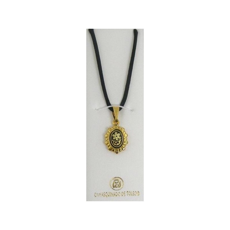 Damascene Gold Flower Oval Pendant. Damascene Jewelry by Midas of Toledo Spain. Golden Necklace. Damascene Womens Jewelry.