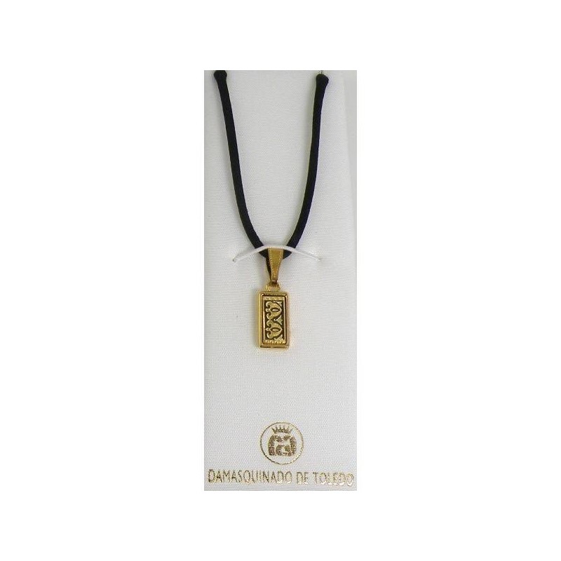 Damascene Gold Geometric Rectangle Pendant. Damascene Jewelry by Midas of Toledo Spain. Golden Necklace. Damascene Womens Jewelry.