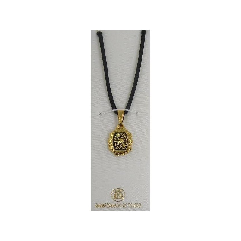 Damascene Gold Bird Rectangle Pendant style 8207. Damascene Jewelry by Midas of Toledo Spain. Golden Necklace. Damascene Womens Jewelry.