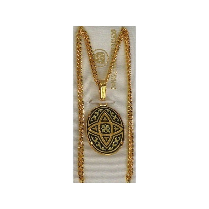 Damascene Gold Geometric Oval Pendant style 2359. Damascene Jewelry by Midas of Toledo Spain. Golden Necklace. Damascene Womens Jewelry.