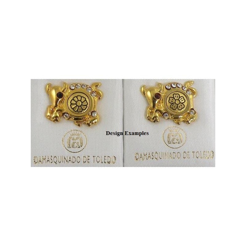 Damascene Gold Taurus the Bull Zodiac Tie Tack / Pin by Midas of Toledo Spain style 5314