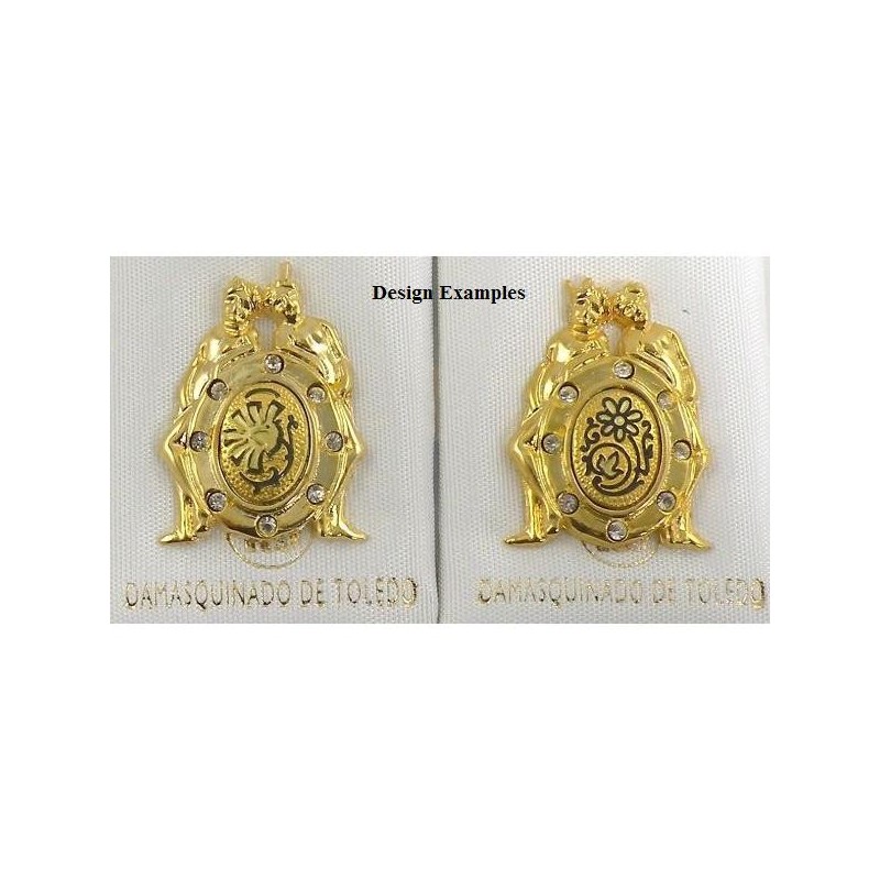 Damascene Gold Gemini the Twins Zodiac Pin. Damascene Jewelry by Midas of Toledo Spain. Zodiac jewelry.