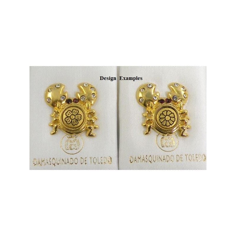 Damascene Gold Cancer the Crab Zodiac Tie Tack / Pin by Midas of Toledo Spain style 5316