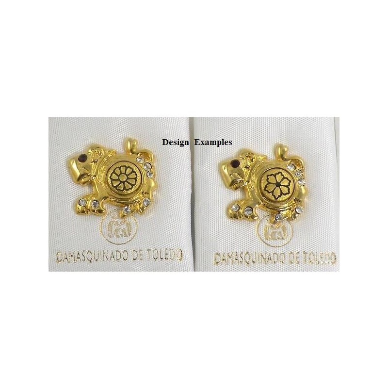 Damascene Gold Leo the Lion Zodiac Tie Tack / Pin by Midas of Toledo Spain style 5317