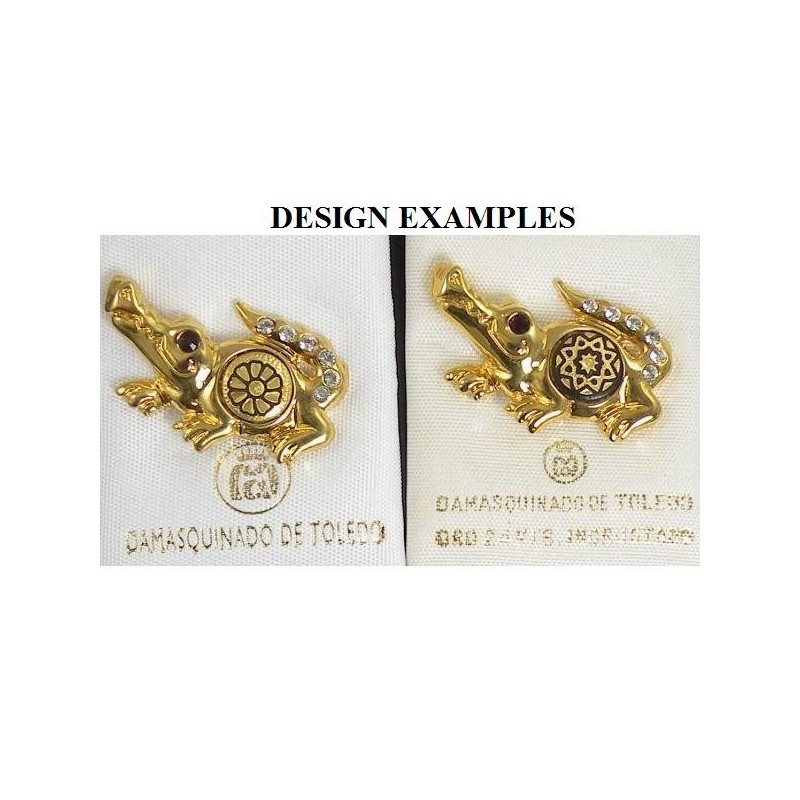 Damascene Gold Alligator Animal Pin. Damascene Jewelry by Midas of Toledo Spain. Golden Tie Tack.