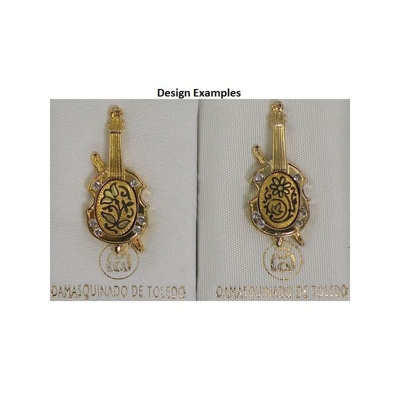 Damascene Gold Cello Musical Pin. Damascene Jewelry by Midas of Toledo Spain. Golden Tie Tack.