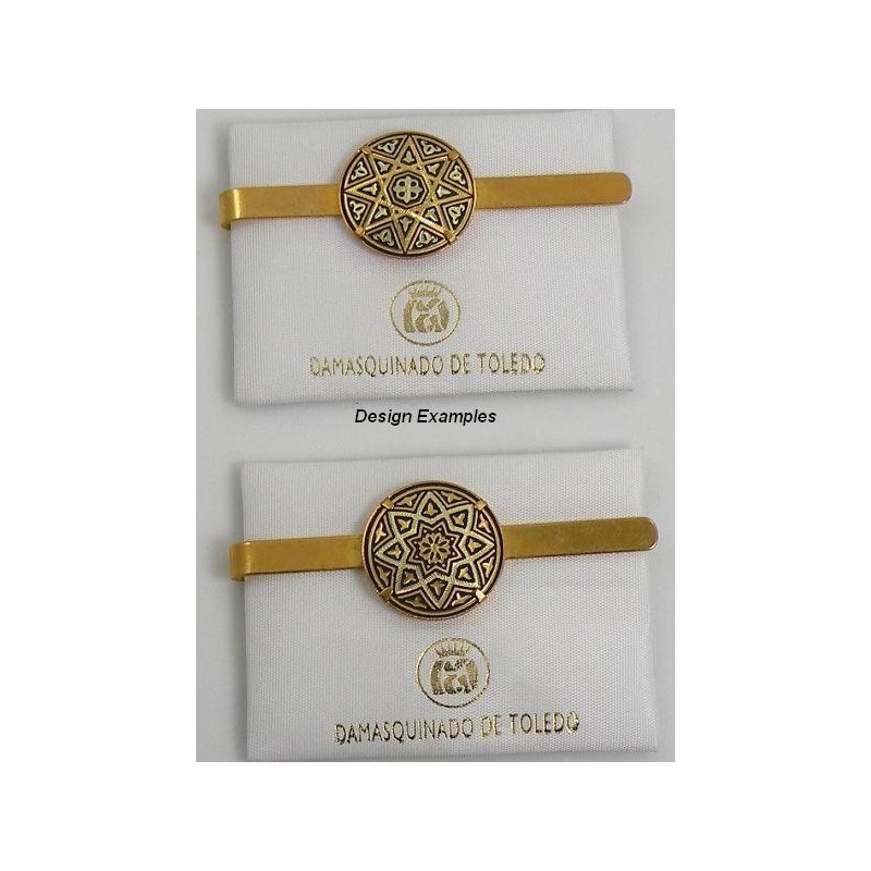Damascene Gold Mens Tie Clip Star Round style 2602. Damascene Jewelry by Midas of Toledo Spain. Golden Tie Clip.