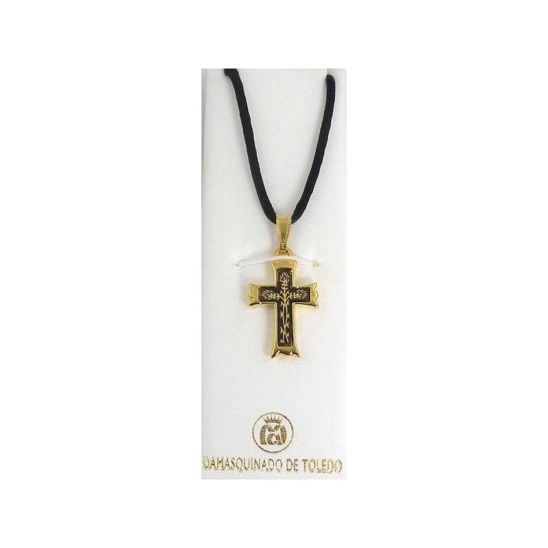 Damascene Gold Cross Thorn Pendant style 8239. Damascene Jewelry by Midas of Toledo Spain. Golden Cross. Religious Christian Jewelry.