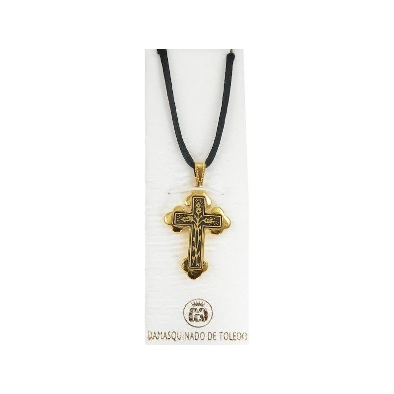 Damascene Gold Cross Thorn Pendant style 8236. Damascene Jewelry by Midas of Toledo Spain. Golden Cross. Religious Christian Jewelry.
